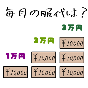例えば、月1万2,000円を自分で買い物に使った場合。